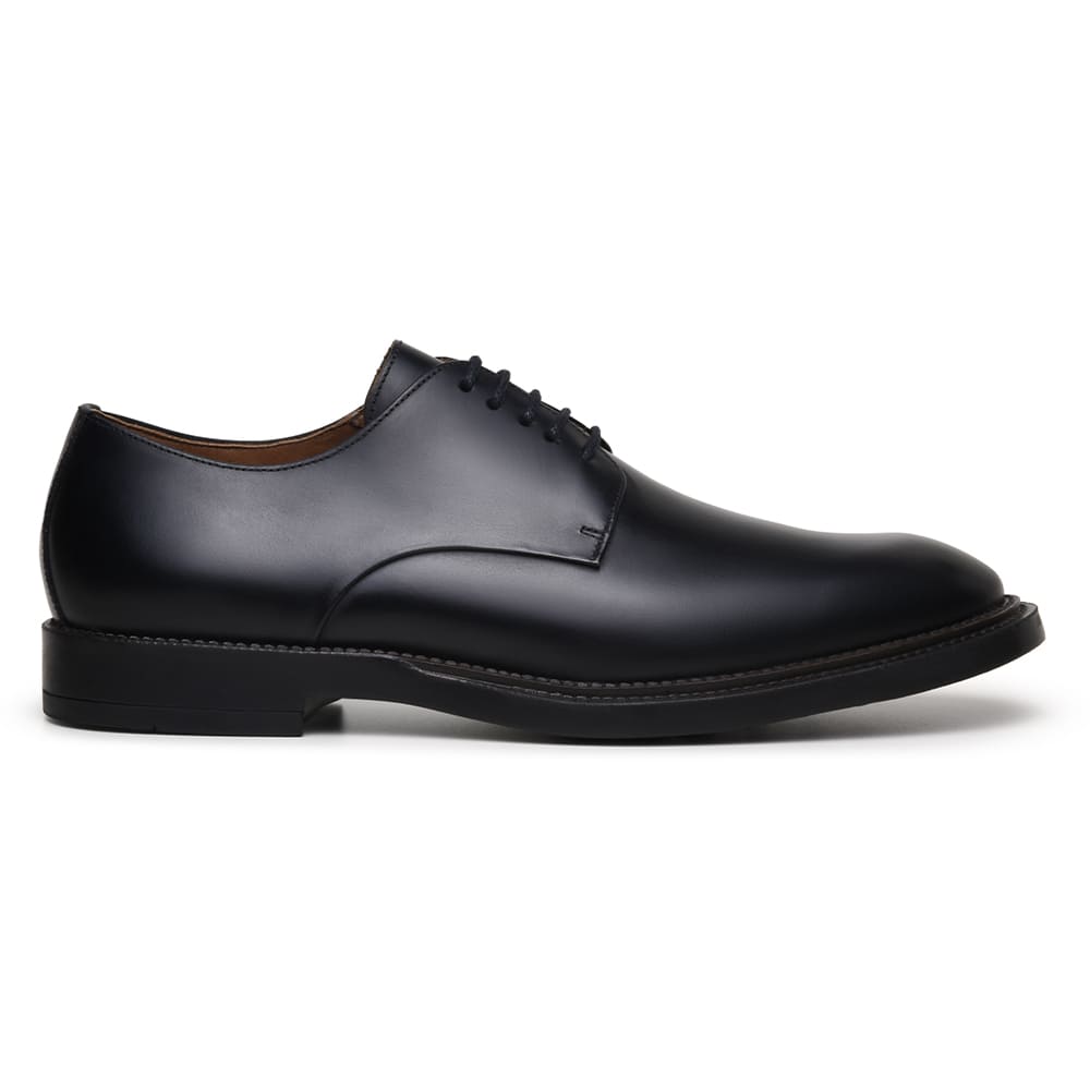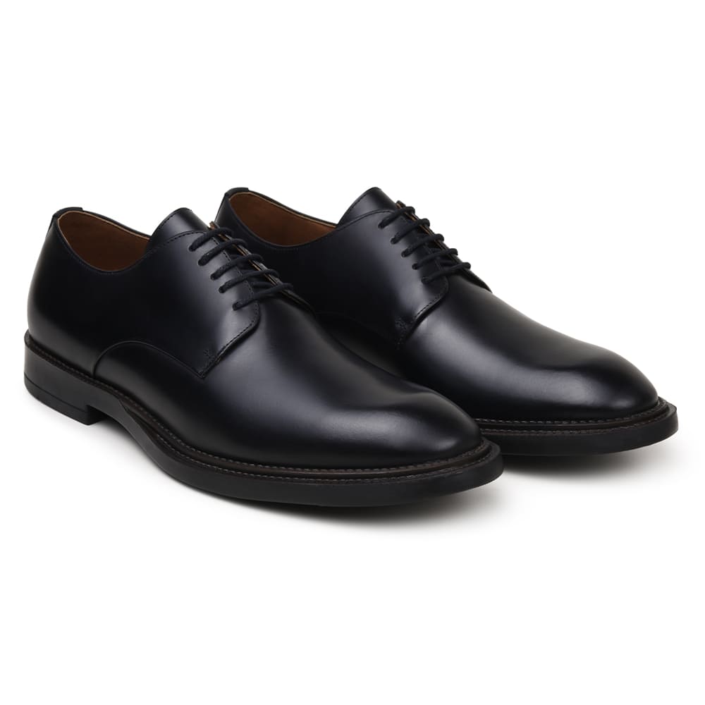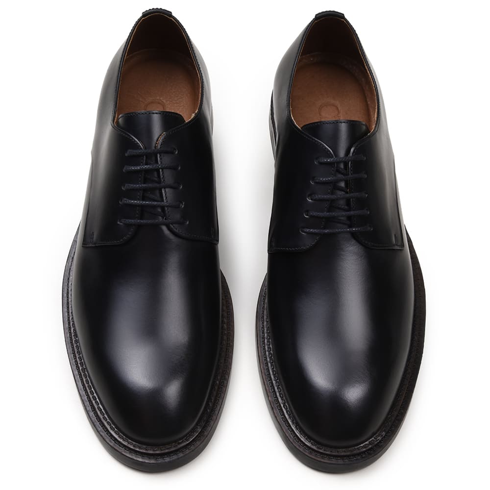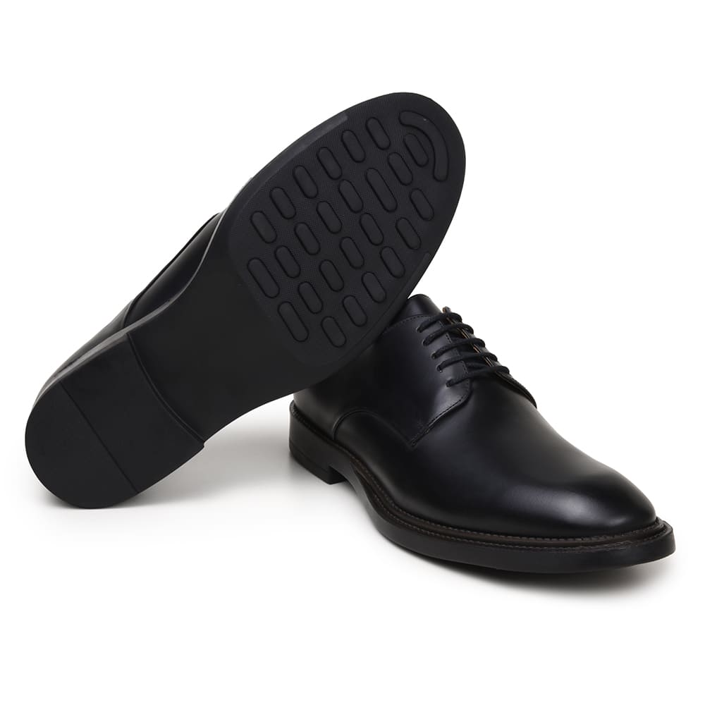 CABEDAL: Sapato social Derby fabricado em couro bovino Napa Romana de alta qualidade na cor preto;