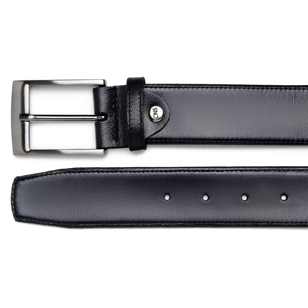 MATERIAL: Cinto social em couro pelica de alta qualidade na cor preto;
