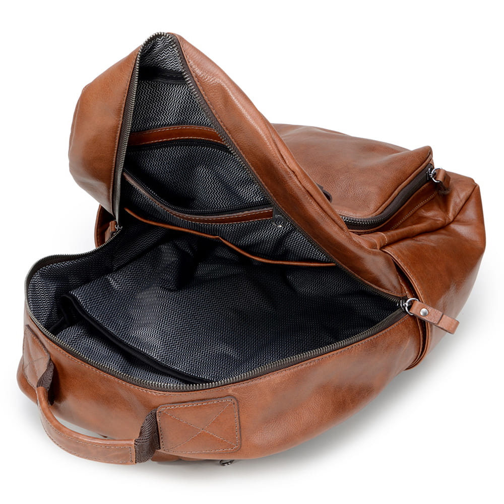 MATERIAL: Mochila fabricada em Couro Borneo de alta qualidade;
