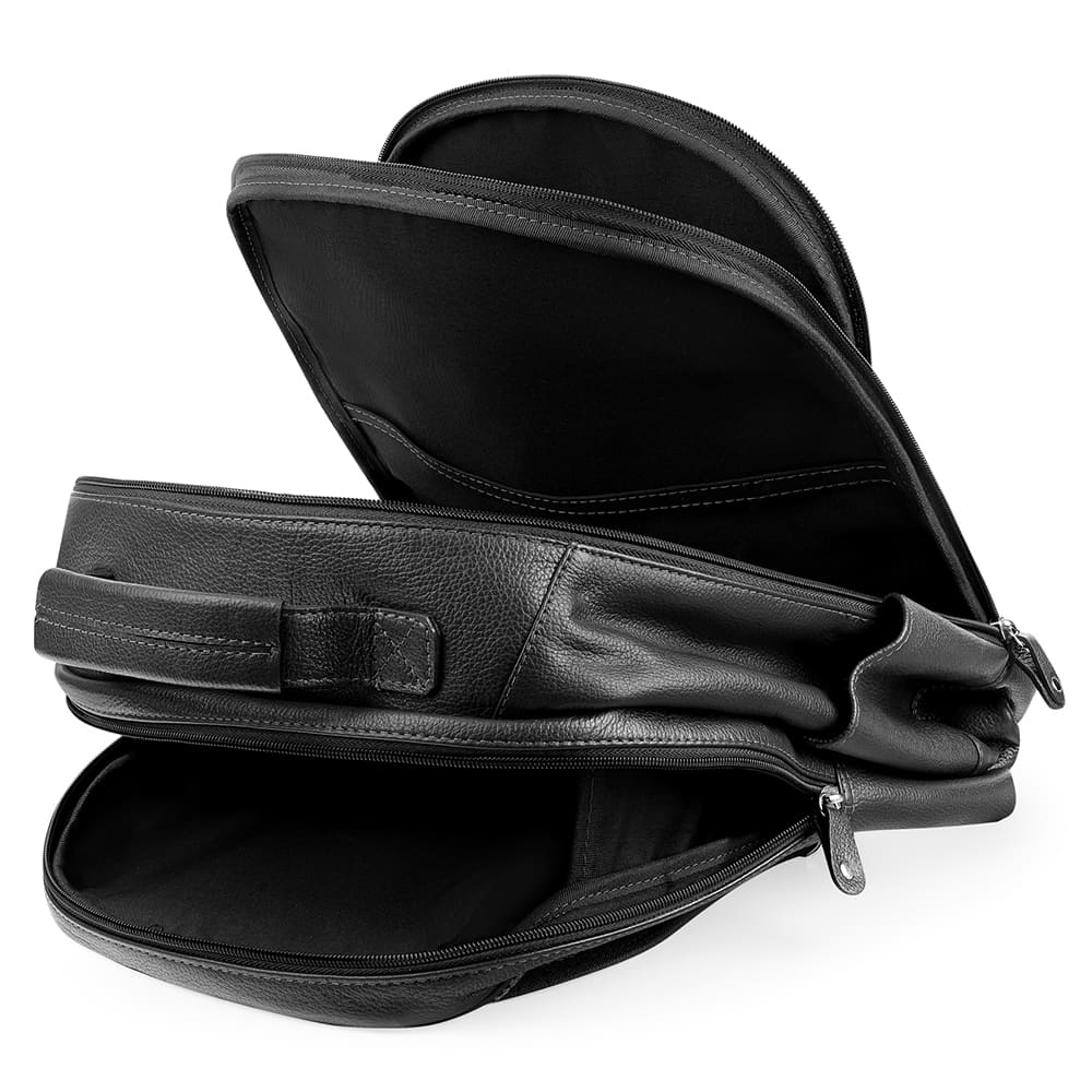 MATERIAL: Mochila em couro bovino (Floather) de alta qualidade na cor preta;