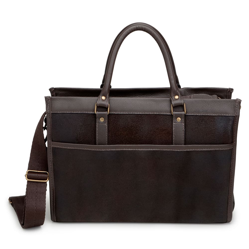 MATERIAL: Pasta fabricada com nosso exclusivo Couro Aged: uma seleção premium de camurça super macia de alta qualidade, aperfeiçoada com uma camada de resina que suaviza os pelos, seguido de um tratamento de queima na escova para um visual elegante e moderno. Detalhes em Couro Cabernet de alta qualidade;