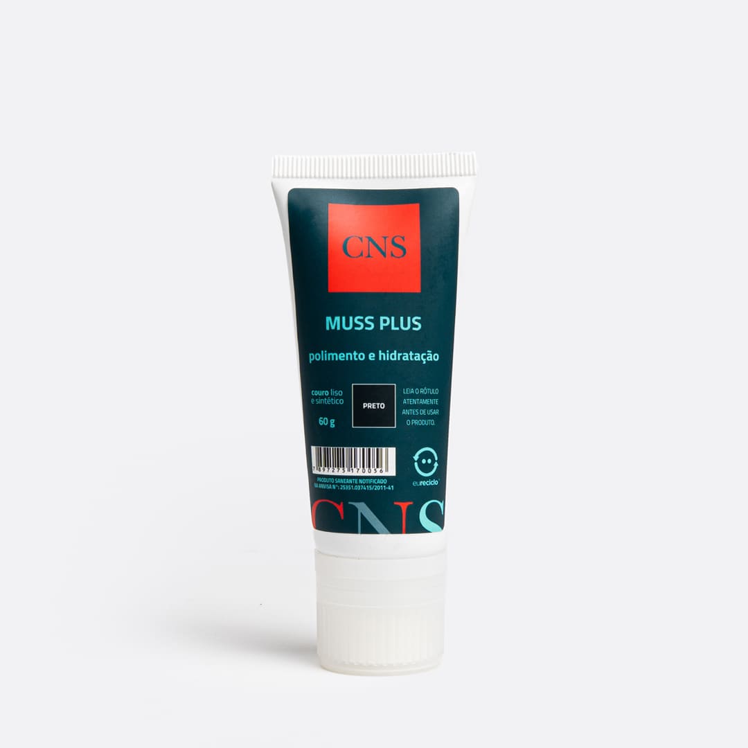 SOBRE O MUSS PLUS: Produto para polimento a base de ceras naturais e água. Pela sua formulação, recupera o brilho, a flexibilidade e hidratação natural de calçados em couro liso, podendo também ser utilizado em materiais sintéticos, tendo altíssimo rendimento e prolongada permanência sobre as superfícies tratadas. Não agride o couro. Fabricado em diversas cores, permite perfeita adaptação às cores originais, amaciando o couro a cada aplicação. De aplicação prática, hidrata o couro e cobre arranhões (exceto incolor). Para obter um brilho natural, lustrar após aplicação.