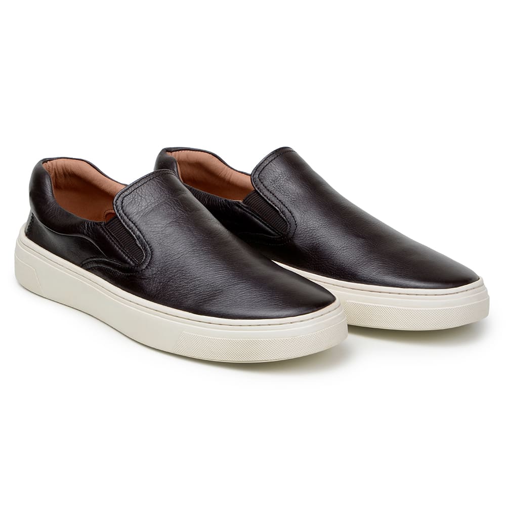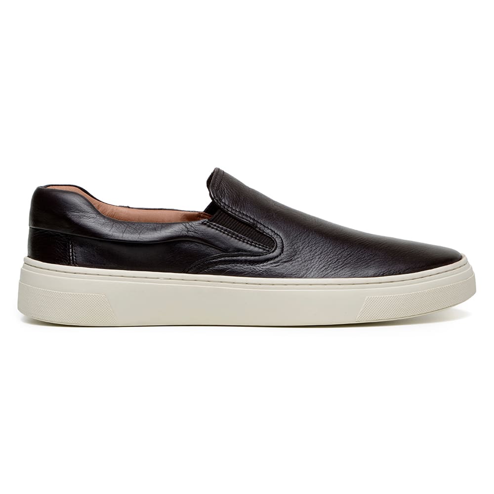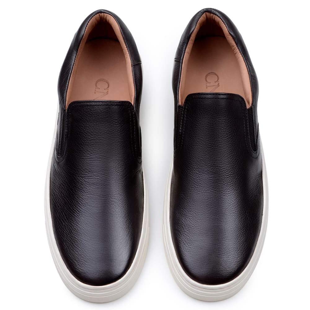 CABEDAL: Tênis Casual modelo Slip On, fabricado em couro bovino Slim de alta qualidade na cor preto;