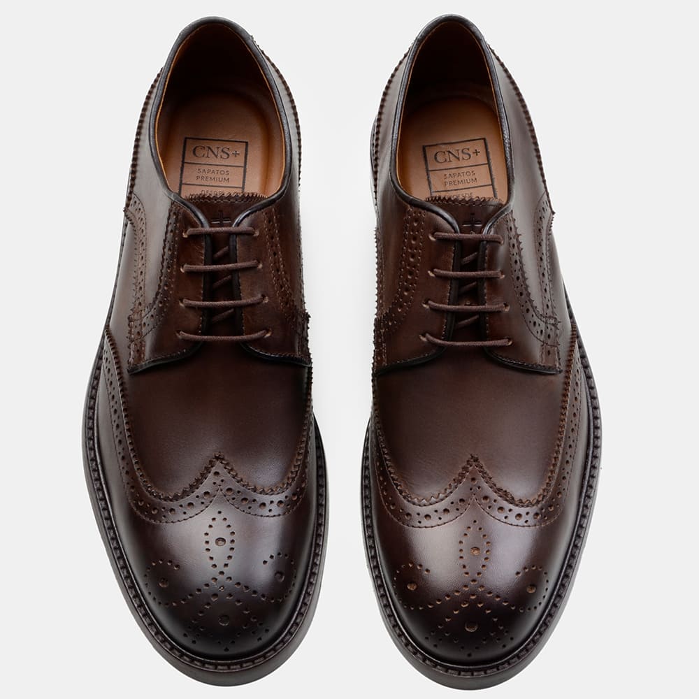 CABEDAL: Sapato Social Masculino Derby CNS+ Brogue fabricado em couro bovino Look de alta qualidade na cor moca;