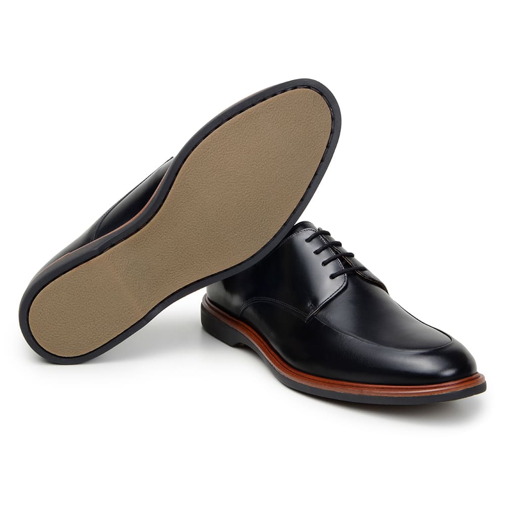 CABEDAL: Sapato casual modelo Derby, fabricado em couro bovino Napa Romana de alta qualidade na cor preto;