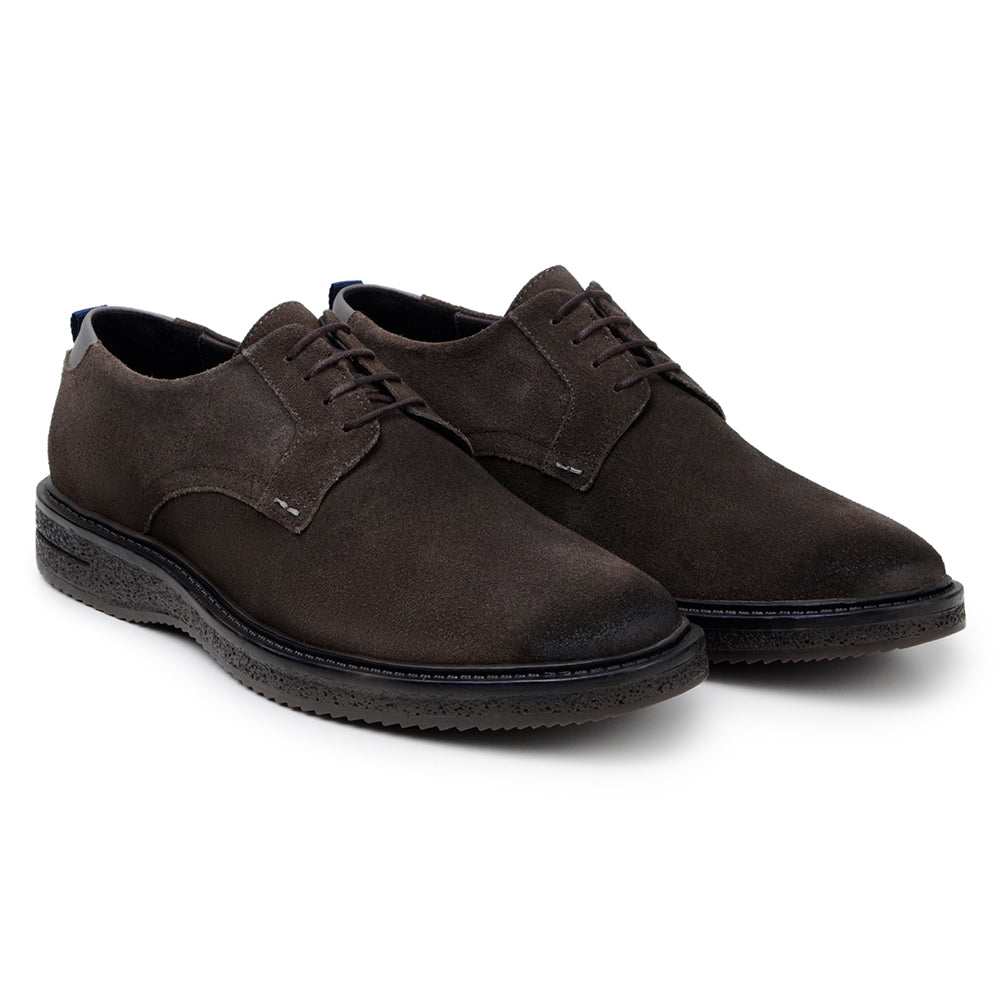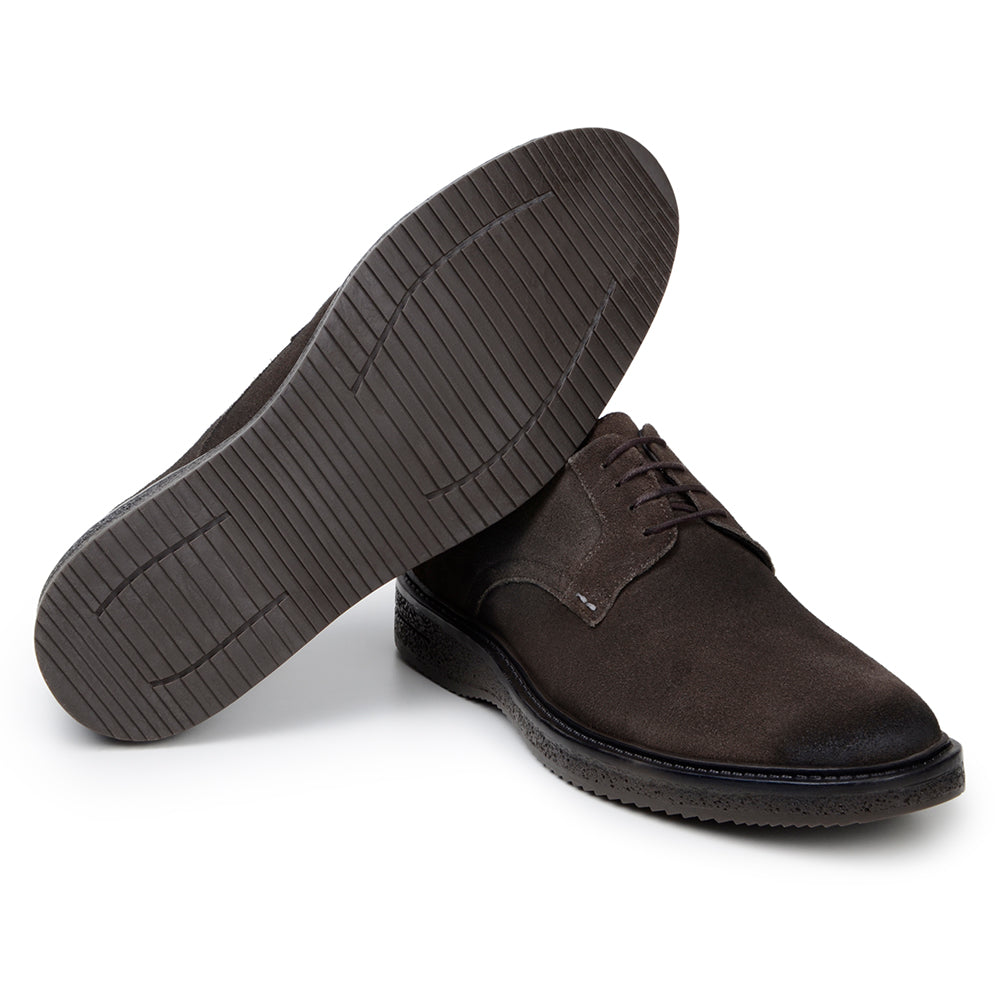 CABEDAL: Sapato casual modelo Derby, fabricado em couro bovino Camurça/ Fly de alta qualidade;