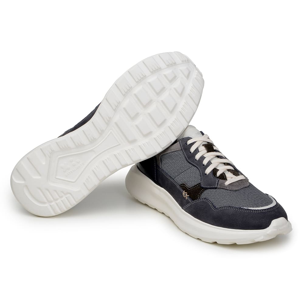 CABEDAL: Tênis casual fabricado em couro bovino Chamoa e mistura de materiais de alta qualidade na cor chumbo, white, marinho, e preto;