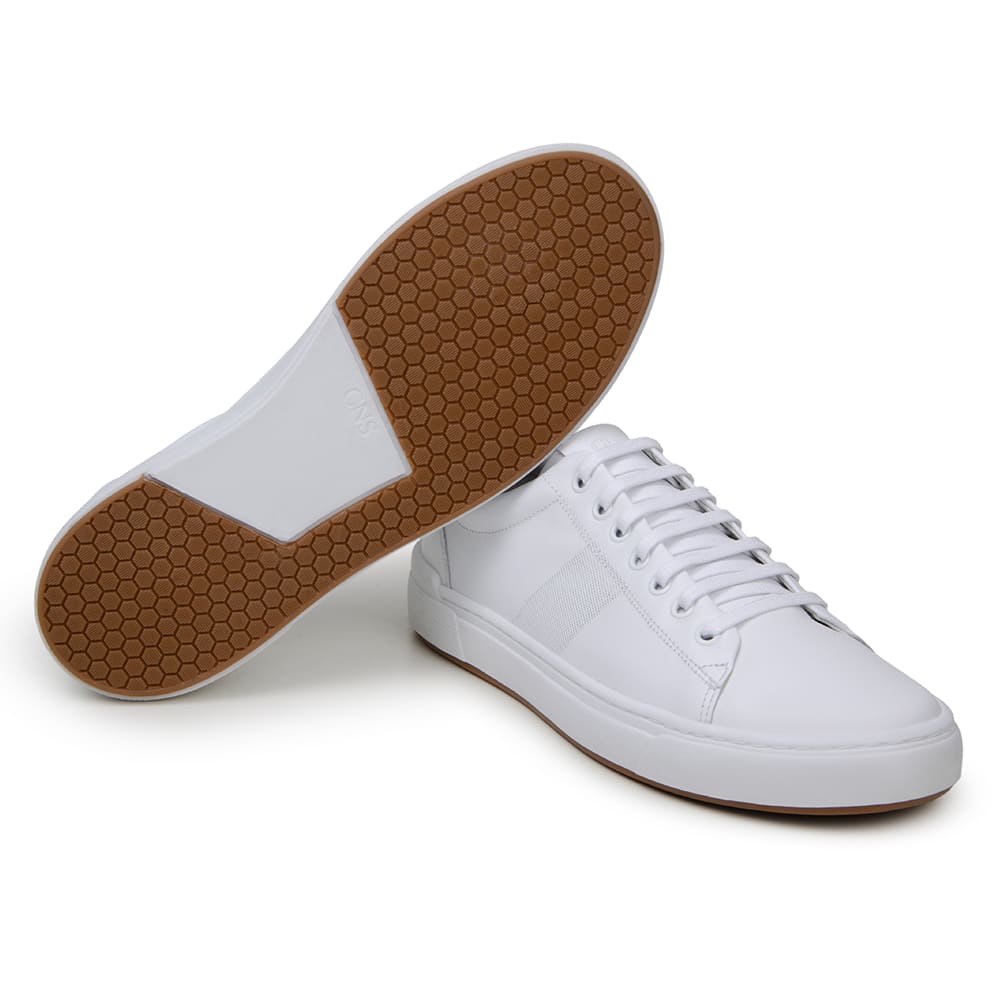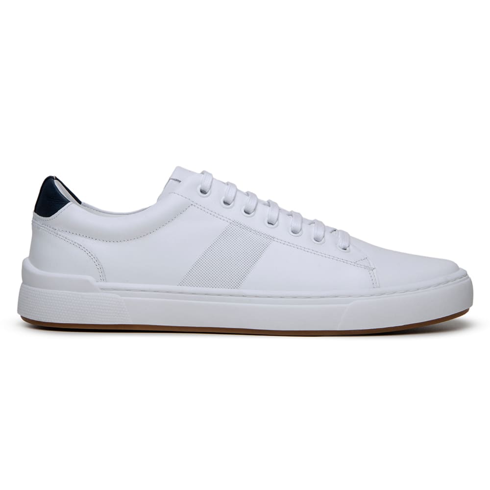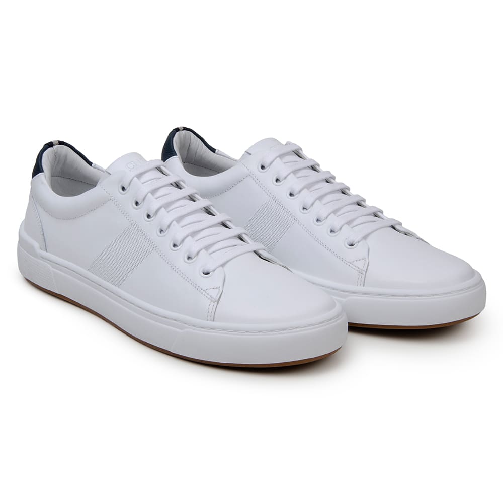 CABEDAL: Tênis casual, fabricado em couro bovino Napa Soft/Napa Comfort de alta qualidade na cor branco e marinho;