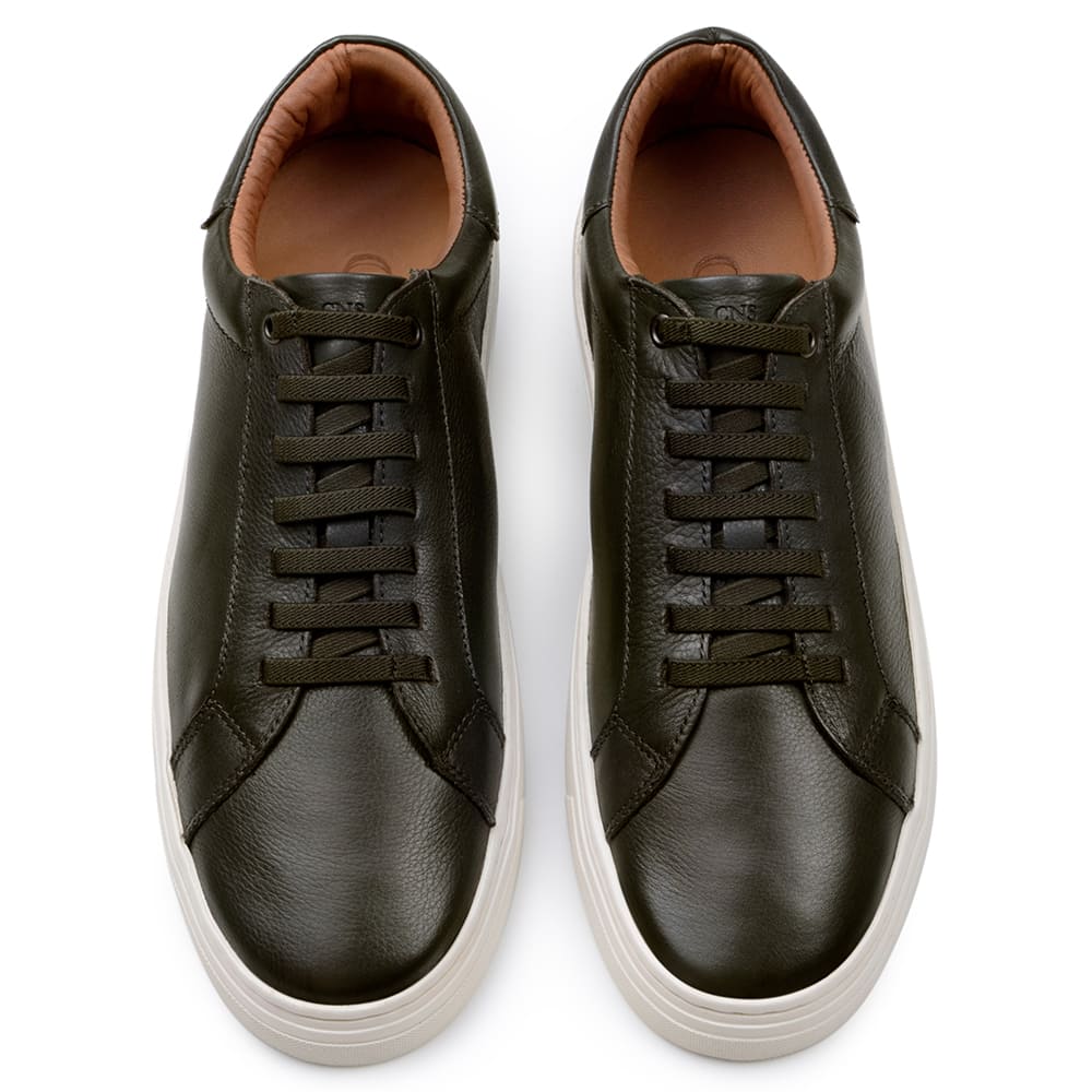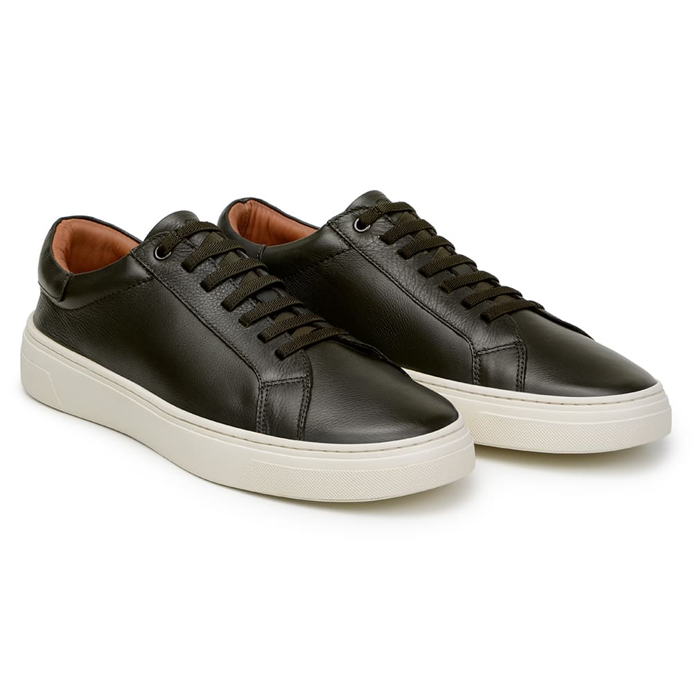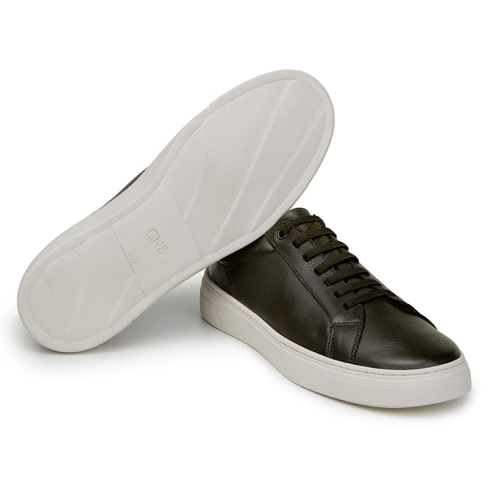 CABEDAL: Tênis casual, fabricado em couro bovino Slim de alta qualidade na cor verde militar;